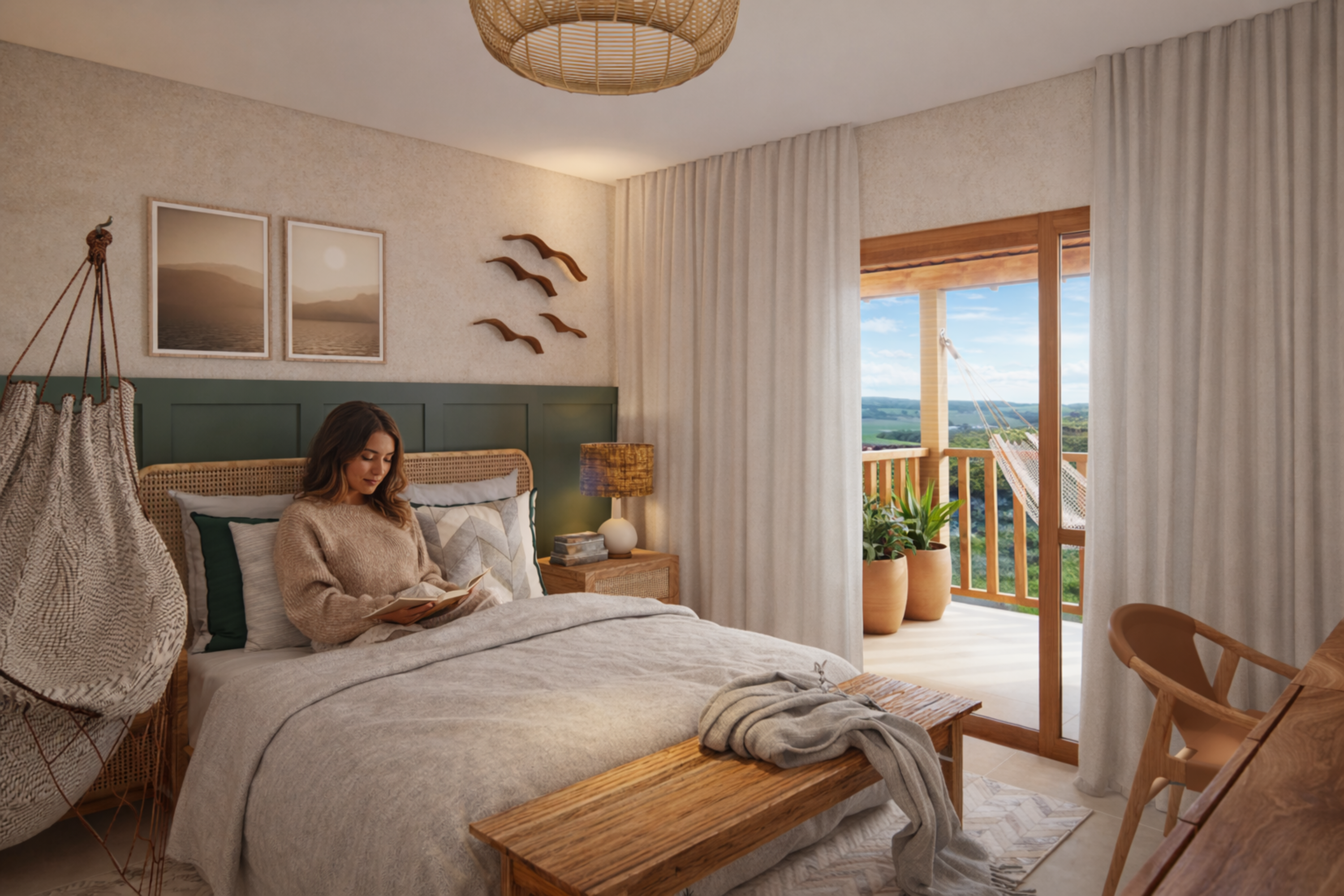 Com até 64 casas de charme, o Villa Trancoso entrega exclusividade real. Poucas unidades, mais privacidade, tranquilidade e um padrão construtivo que transforma o imóvel em patrimônio. Um conceito de moradia sofisticado, pensado para quem busca bem-estar, conforto e alto potencial de valorização.